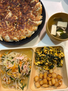 こんにちは あおいです🐰 最近載せてなかったから料理の写真のせちゃう 少し焼きすぎた餃子の日🥟 ⭐️餃子 ⭐️ナムル ⭐️じゃがいもの照り焼き ⭐️ほうれん草の卵とじ炒め ⭐️豆腐とわかめときのこのスープ 最近ナムルハマってる! 野菜もたっぷり取れるし好き🥰 💓 💓 ブログ 見にきてくれて ありがとう またみてくれたら 嬉しいですっ お し ま い