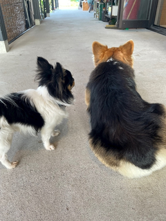 看板犬と遊んだり