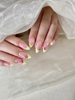 バターイエローネイル🧈💛🍒 可愛い( ^ω^)ぬふふ